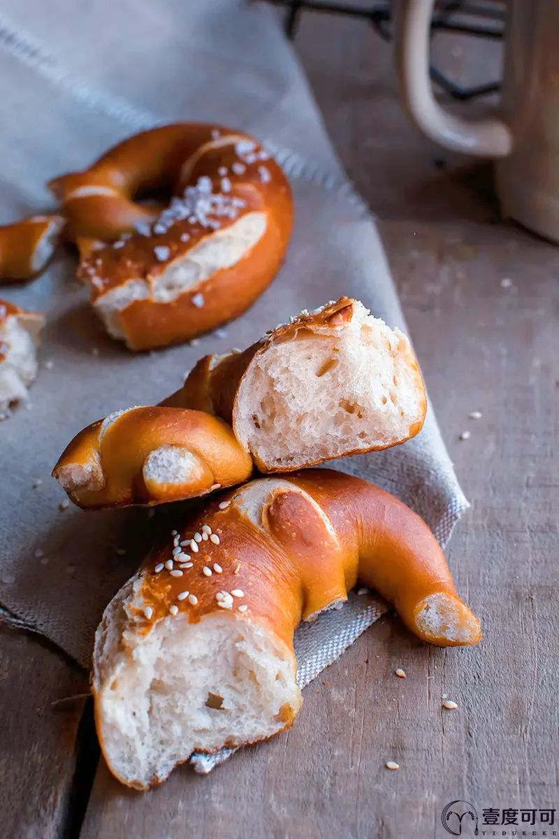 12、碱水面包的中央部分比其他部分厚,当面团条到达末端时,它会变得更细。
