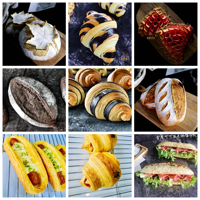 高端面包综合课程:实际学习时间18天,130余种产品,包含日式面包,布里欧修类面包,起酥面包,软欧包,欧式面包,装饰艺术面包。终生免费升级配方免费进修学习,所有产品全程独立操作,详细系统烘焙知识讲解学习,毕业后可达到高级水平。
